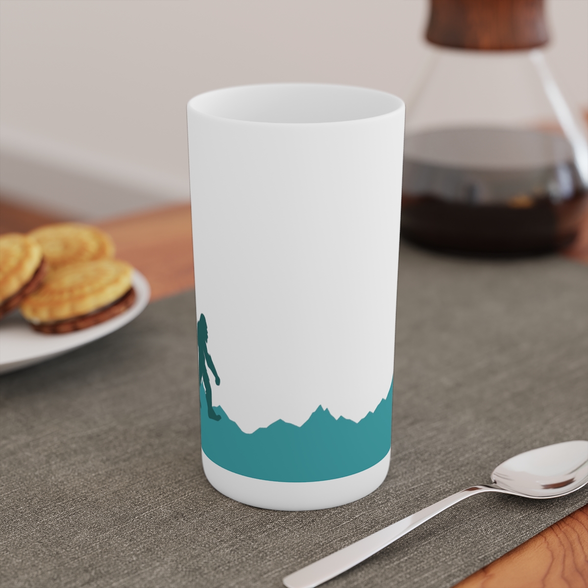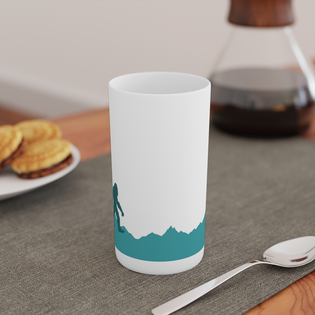 Sip sassily with our ‘Lake Tahoe Tall Sasquatch’ mug. This conical wonder, available in 3oz, 8oz, and 12oz sizes, is as timeless as the Tahoe legend itself. It’s made of durable white ceramic, perfect for showcasing your favorite designs. Just remember, full bleed designs might fade near the seam – even Sasquatch can’t fight the laws of print physics.